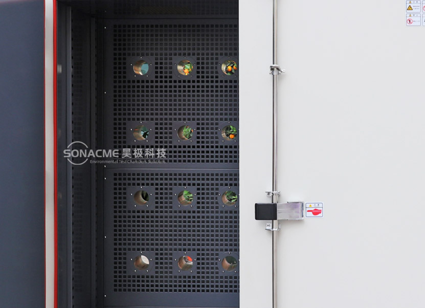 在箱体两侧配有直径100毫米的测试孔,并配有耐高低温的硅胶塞。